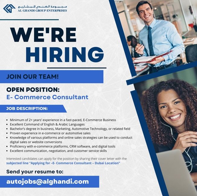 Interested candidates should share their cover letter and CV with the subject line “Applying for E-Commerce Consultant – Dubai Location” to autojobs@alghandi.com.