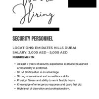 Security PersonnelDubai, UAEFull-TimeCompetitiveAccommodation, Meals, InsuranceMin. 3 years